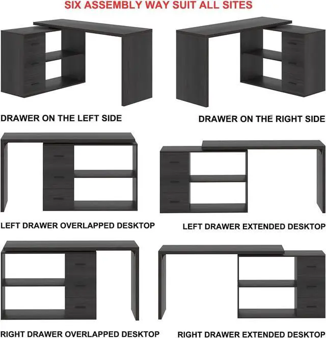 Suitable for all Sites and Easy to Assemble: The L shape desk with cabinet is perfect for study room, living room, bedroom and office for a corner place or your working space with lots of space. Depending on how your space is arranged, this reversible l shaped desk for home office can be configured in six ways. Elaborate design and clear instruction through all steps allow you to effortlessly assemble this computer table under 30 minutes. All hardware included.