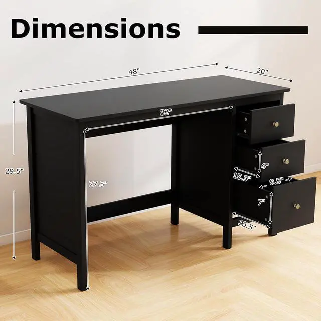 Large Work Surface: This computer desk provides abundant storage space for your laptop, documents, and accessories. Measuring 48 inches in length, the home office desk gives you plenty of space to organize your work area efficiently.