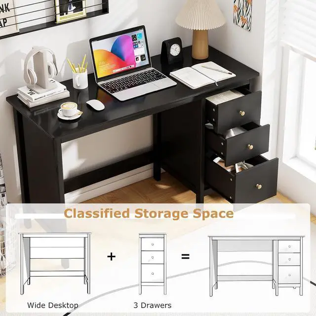 Practical Storage Drawers: The laptop desk features 3 deep drawers that keep essentials neatly organized and easily accessible, such as books and stationery. Just feel free to grab the handles to pull out the drawers and grope for what you want.