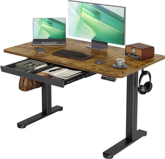 Accessories and Service: The electric standing desk comes with 2 hooks and a plastic drawer; if you have any problems during the use or installation of the adjustable standing desk, please get in touch with us through