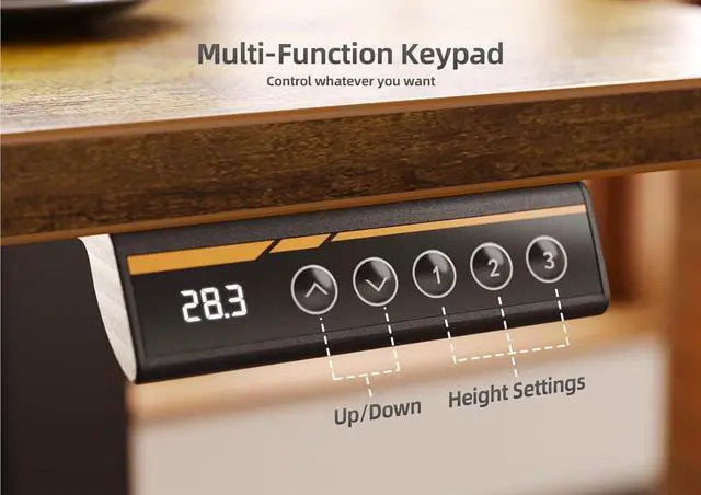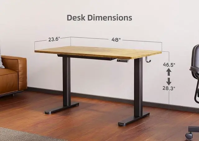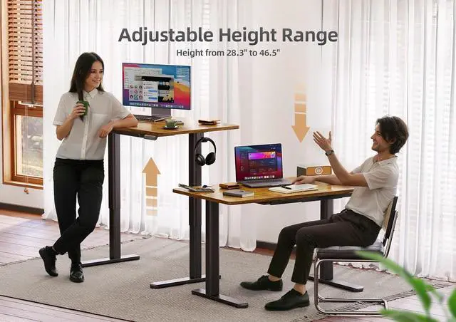 Smooth Height Adjustment: The Adjustable standing desk freely select the height, from 28.3 inches to 46.5 inches. It can save your favorite three settings and smoothly switch the electric standing desk between them