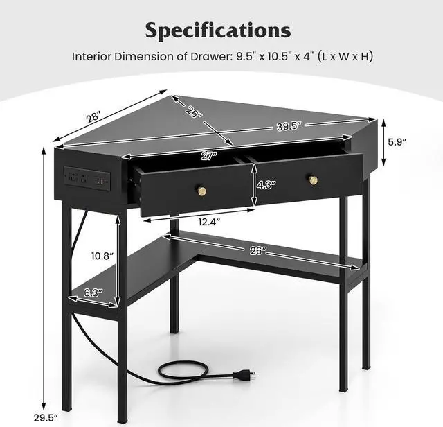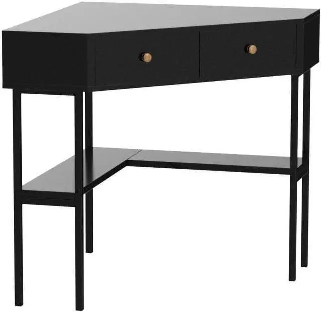 Ample Storage Solutions: With 2 spacious drawers and an open shelf, the corner console table provides ample storage space for office supplies, books, and other essentials. Keep your workspace organized and clutter-free!
