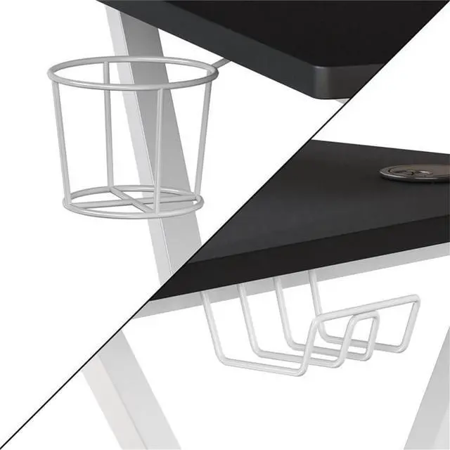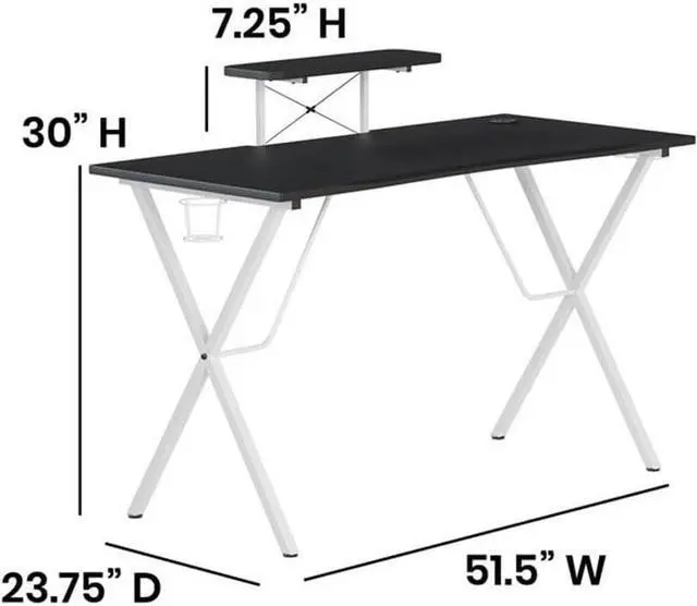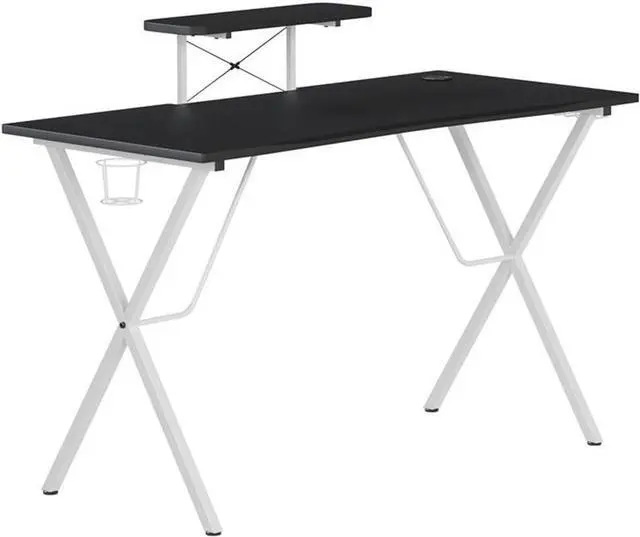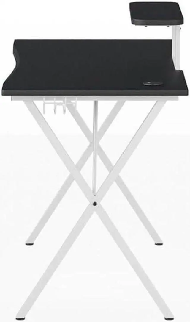 Gaming Table: Ergonomic gaming desk for a better gaming experience; Computer desk boasts a cup holder, headset hook and raised monitor stand; Pair with our Gaming Chair Racing Office PC Chair