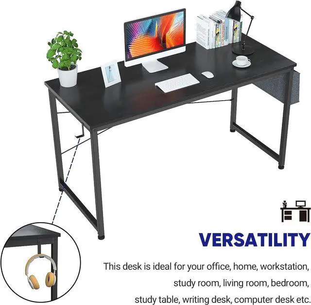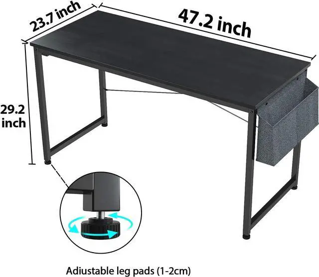 LARGE SPACE & EXTRA STORAGE - With modern design, the writing desk can suit any home, office, school and workspace. The wide desktop ( 47.2 " x 23.7 " ) provides ample space for computer, monitor, printer and other office supplies as computer desk, study desk, gaming desk, writing table, picnic table etc. Extra storage bad and iron hook which can make the most of your space. You can choose to assemble the storage bag and iron hook on right or left for your wish.