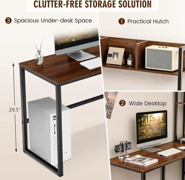 • Reversible Hutch Offers Additional Storage Attached with open storage hutch which can be installed at right or left side to fit different room configuration. Thanks to open storage hutch with appropriate height, any office essentials placed on it can be accessible easily. More, edging sides make it possible to classify different kinds of items.
