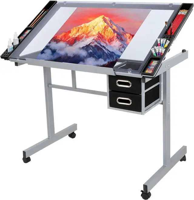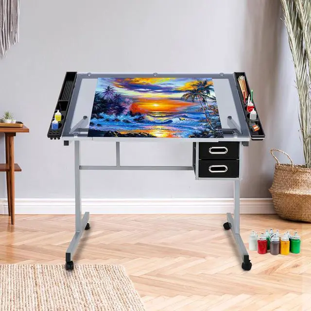 Sturdy and Durable: Toughened glass table top is thick and durable and the sturdy powder-coated steel frame ensures stability during work. So you can focus on your artistic endeavors without any worries