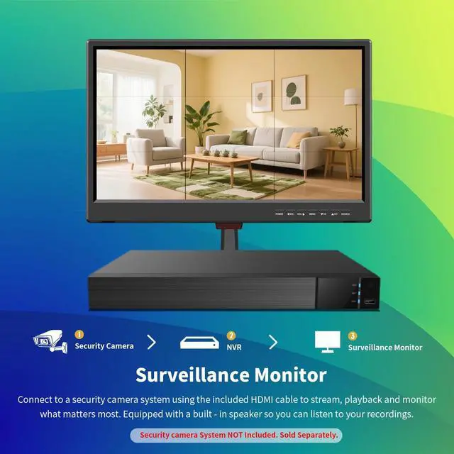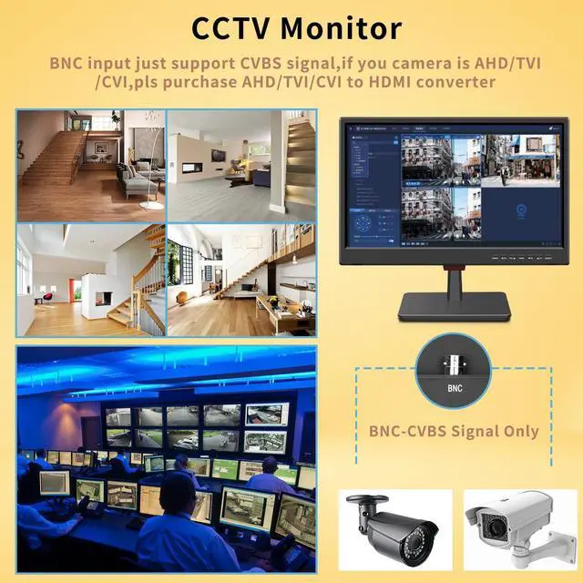 The Jexiop 19" Security Monitor offers a rich set of video input options, including HDMI, VGA, and BNC, making it versatile for various applications like CCTV, DVR, office, and home security camera systems.