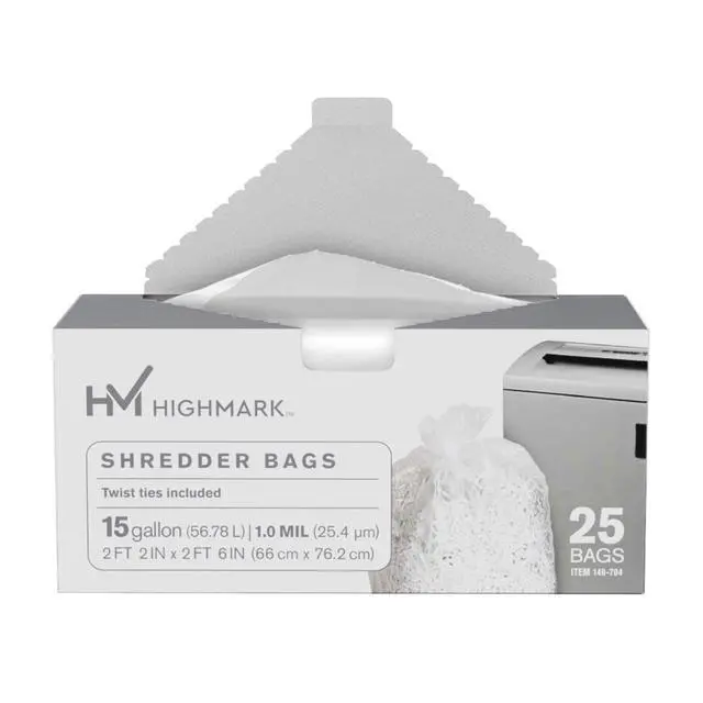Quality supplies for your shredder ^^ Shredder bags are tough and durable for all of your home and office needs. ^^ High-quality clear bags fit most shredders. ^^ Shredder bags are available in clear and come in a box of 25.