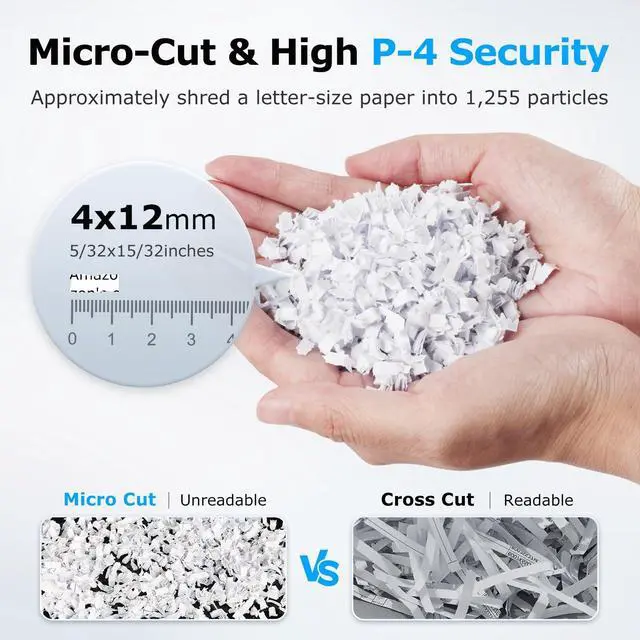 Ultra-Secure Micro-Cut & Quiet Operation: Get maximum document security with confetti-like shreds measuring just 5/32" x 15/32" (4 x 12 mm); Operates at a quiet 58 dB, ideal for shared workspaces ^^ Smart Energy Saver & Large 8.1 -Gallon