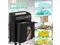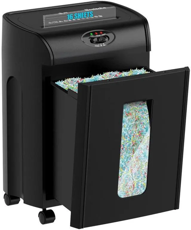 16-sheet Super Cross CutThe Paper shredder shred Max 16-sheet (at a time), no need to remove staples or clips. Also shreds credit card/CD/junk mail. ETL certification. ^^ Ultra-Quiet&Durable for Office UseShredder for Office shredding paper with staples and CD/credit cards (one at a time), receipts, bills and important documents. shredders for home office Shred paper cannot be recovered. 54 dB low noise provides a quiet and comfortable for Office use ^^ P-4 High Security LevelThe Shredding cutter can shred paper into 5/32" x 1-1/2" (4x33mm), Up to P4 Security Level.