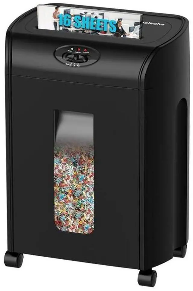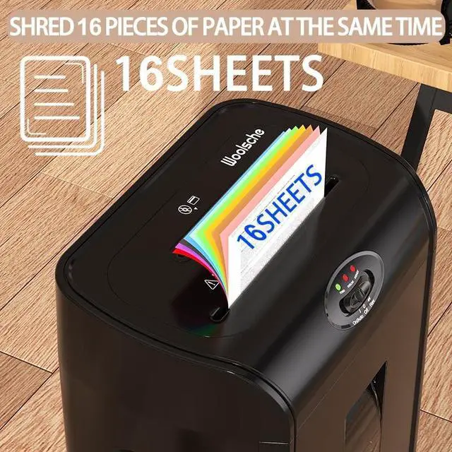 16-sheet Super Cross CutThe Paper shredder shred Max 16-sheet (at a time), no need to remove staples or clips. Also shreds credit card/CD/junk mail. ^^ P-4 High Security LevelThe Shredding cutter can shred paper into 5/32" x 1-1/2" (4x33mm), Up to P4 Security Level. US patented cutter can prevent 100% damages to shredder from paper jams and prolong its life span ^^ Convinient Design &10 Minutes ShreddingWith 10 minutes Non-Stop Shedding, overload operation of the Home shredder machine will Auto start overheating protection with 45 munites cooling time. It include 3-mode control switches (FWD, Power and Auto reverse functions simplify shredding and paper jammed clearing processes ^^ Ultra-Quiet&DurableShredder for Office shredding paper with staples and CD/credit cards (one at a time), receipts, bills and important documents.