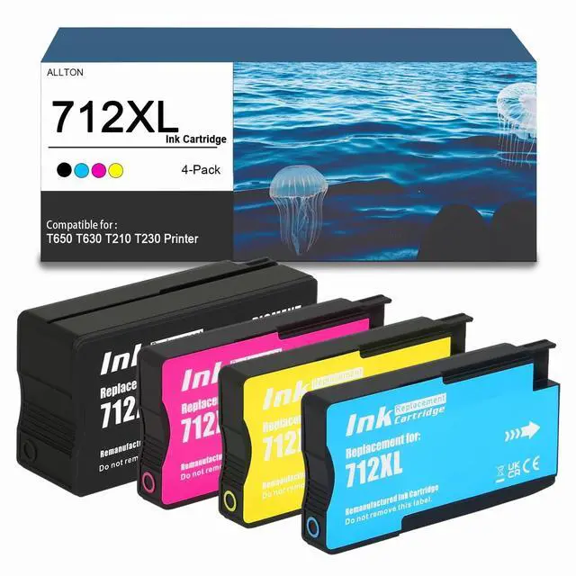 Packaging Description: Our compatible 4-pack 712 ink cartridge comes with 4 ink cartridges Black Cyan Magenta Yellow ^^