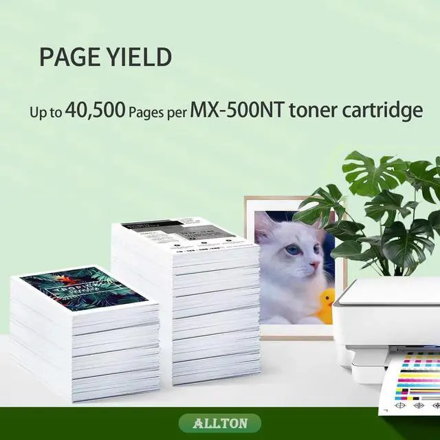Page Yield: Yields up to 40, 500 pages per MX-500NT black Toner cartridge, at 5% coverage on letter/a4 ^^ Please confirm your printer model and select the applicable product before purchasing