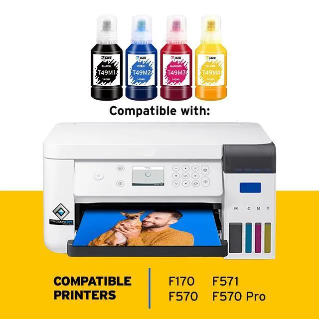 Specifically Designed for PrinterPrinters Jack T49M sublimation ink tailored exclusively for F170 F570, our Printers Jack sublimation ink brings hassle-free printing to your fingertips. Printers Jack 560ML sublimation ink included