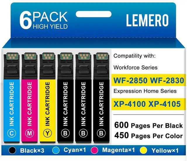 Excellent Value 6-Pack Combo - Replacement for Epson 212XL Ink Cartridges. This high-yield set includes 3 Black, 1 Cyan, 1 Magenta, 1 Yellow ink cartridge, providing a superior, cost-effective solution for your printer. Stock up and save significantly versus buying single packs ^^ Guaranteed Fit & Professional Print Quality - Works with XP-4100/XP-4105, WF-2830/WF-2850 Engineered for flawless compatibility with Epson Expression Home XP-4100 XP-4105 ink printers and WorkForce WF-2830 WF-2850 ink printers. Our black ink delivers laser-sharp text, while the tri-color set ensures vibrant photos and graphics ^^ Maximum Savings & High Page Yield - Up to 600 Pages per Black, 450 per Color.