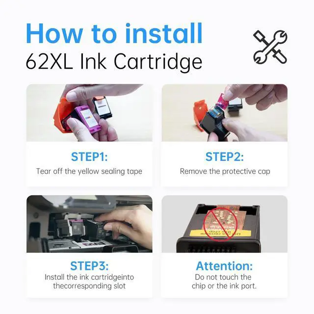 ^^ Warm Notice: Before placing an order, kindly verify that your printer model is compatible with 62XL black ink cartridges. To ensure optimal performance, avoid touching or removing the cartridge chip, and refrain from making contact with the ink nozzles.