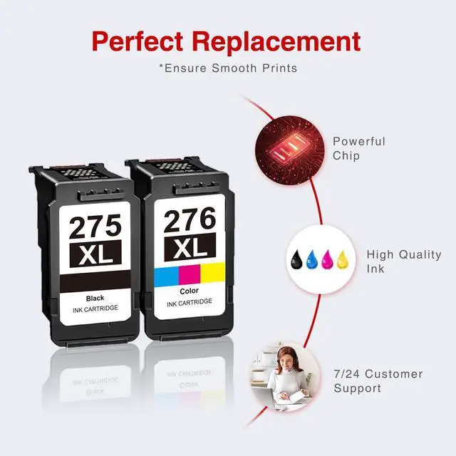 Package Contents: 1 PG-275XL black and 1 CL-276XL color ink cartridge replacement for canon 275 and 276 ink cartridges (this is not an OEM product). For canon ink 275 and 276 have undergone strict inspections to ensure that each item is compatible with your printer perfectly and prints well. This is the perfect holiday or birthday gift for home, office and back-to-school students.