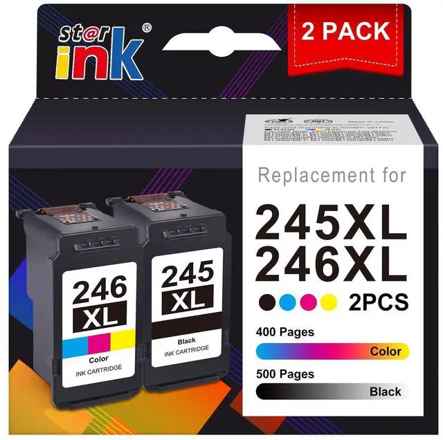Why Choose Starink 245xl ink cartridge Compatible for canon ink 245 and 246 used premium ink, patented cartridge structure, and high-compatibility chip; no clog, no fade, printout vibrant colors and rich black; Compatible replacements for canon 245xl 246xl combo pack ^^ Expert Support When You Need ItEncountering issues like leaks, unrecognized cartridges, or print quality concerns? Our dedicated support team is ready to assist you quickly whether you use replacement for canon 245xl 246xl combo pack ^^ High CompatibilityStarink 245xl 246xl combo pack compatible with canon mx490 printer ink cartridges MX492; Pixma iP2820; Pixma MG2420 MG2520 MG2522 MG2525 MG2555 MG2920 MG2922 MG2924 MG3020 MG3022 MG3029; Pixma TR4520 TR4522 TR4527; Pixma TS202 TS302 TS3100 TS3120 TS3122 TS3129 TS3320 TS3322 Printers ^^ High Yield Starink PG-245XL CL-246XL ink cartridge replacement for canon ink 245 and 246 printouts over 500 pages per 245XL black ink cartridge, 400 pages per 246XL color ink cartridge (at 5 percent coverage of A4 paper) for cannon printer ink ^^ Easier to Use Starink 245XL 246XL ink cartridges replacement for canon ink 245 and 246 are easy to install and use even for the elderly, your printer will defecte the chips quickly and run again smoothly ^^ What you GetStarink 245XL 246XL ink cartridges replacement for canon 245xl 246xl combo pack, including 1 for canon 245xl black ink & 1 246XL Color ink cartridge.