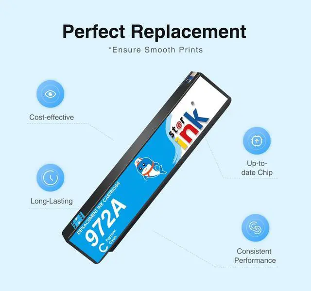 Starink Quality: This compatible 972a ink cartridges are manufactured strictly in accordance with ISO9001, ISO14001, CE, ROHS, REACH, MSDS. All cartridges are strictly inspected before leaving the factory