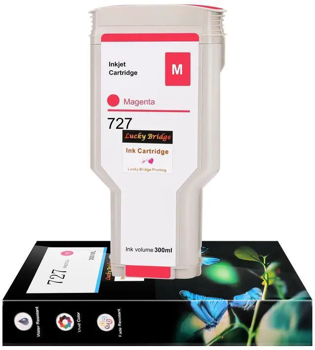 Package: 300ml/PK, 1 magenta. Each ink cartridge is packed with sealed plastic bag, and then put them into inner carton box. This professional packing method can fix the ink cartridge well during multiple transportation to avoid damage or ink leak. ^^ 727 magenta cartridge part number #: F9J77A ^^
