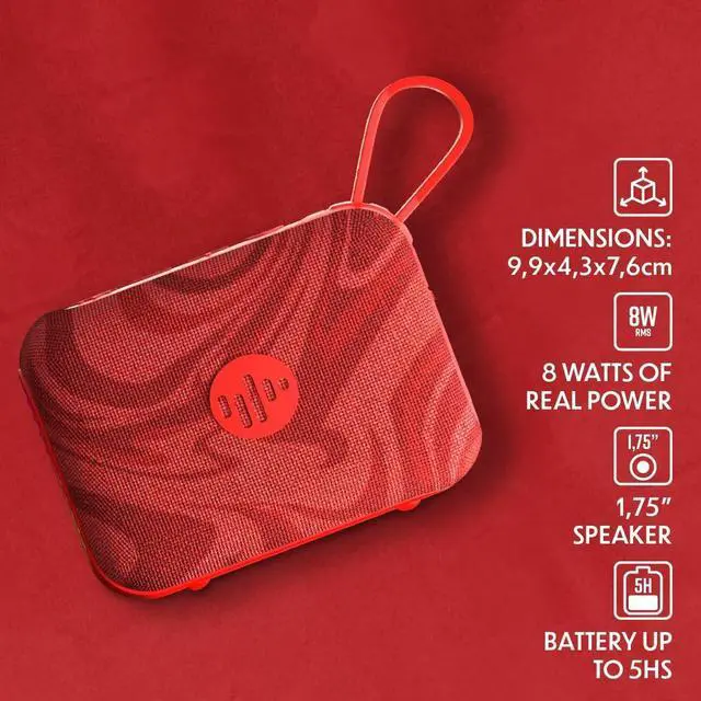 Powerful 8W RMS Sound Experience clear audio with a 1.75 subwoofer that delivers defined bass and surprising sound for such a compact speaker. ^^ Wireless Bluetooth Connectivity Easily connect your devices and enjoy your music without cables. Plus, use Stromberg Connect to link multiple speakers. ^^ Up to 5 Hours of Playtime Keep the music going with a long-lasting battery that gives you hours of continuous entertainment. ^^ Compact and Portable Design Lightweight and easy to carry with its integrated strap, making it the perfect travel companion. ^^ Fun with Style Enjoy RGB lights that follow the beat and IPX4 splash protection, so you can bring the party anywhere, indoors or outdoors.