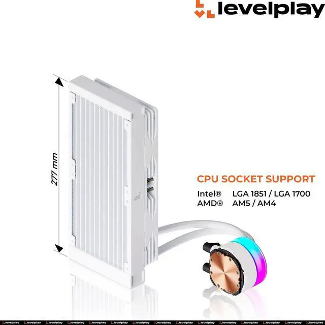 Levelplay Combat Liquid 240 SE AIO CPU Cooler - TDP 280W, ARGB Pump Cover, 240mm Radiator Cooling, 240 Single-Frame Fans, AMD AM5 / AM4 & Intel LGA 1851 / LGA 1700 Compatible - White