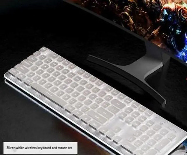 Wireless mute membrane keyboard and mouse set for desktop laptops, gaming, competition, and office use. Keyboard and mouse. L1 Silver - White Light + T6 White