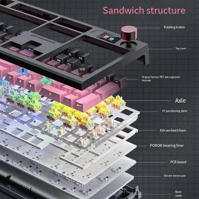 Special tone-deadening filling material is used toreduce the sound of hollow-key presses, resultingin a purer and higher-fidelity sound experience.