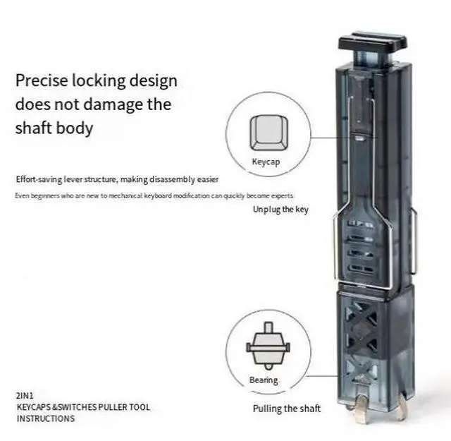 Two-in-one key removal tool for axis extraction, mechanical keyboard, hot-swappable keycaps and axis body disassembly, wired keyboard