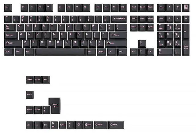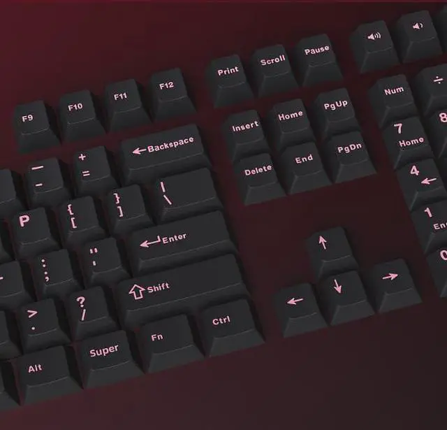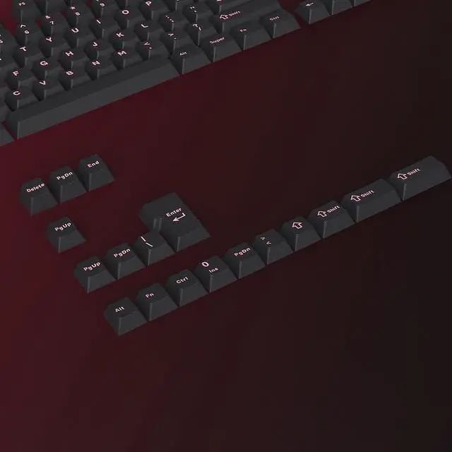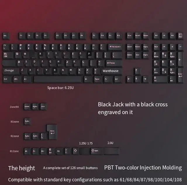 Keycaps made of PBT material, engraved with a complete set of 126 keys, with double color design, high in height.