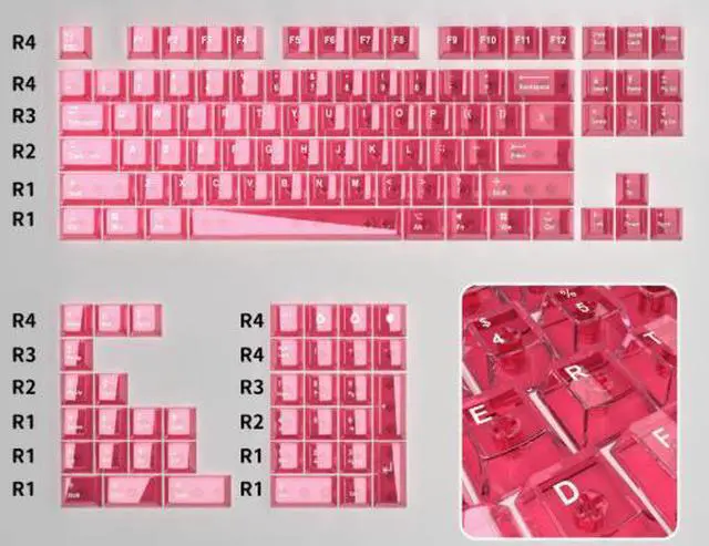 Transparent and light-transmitting keycaps made of PBT, heat-sprayed with color, suitable for 60, 68, 75, 100 types of wooting Polish the PC keycaps thoroughly