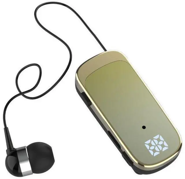 K65 new model clip-on retractable cord Bluetooth earphone, in-ear type, digital display, long battery life, business single earphone Lemon Yellow