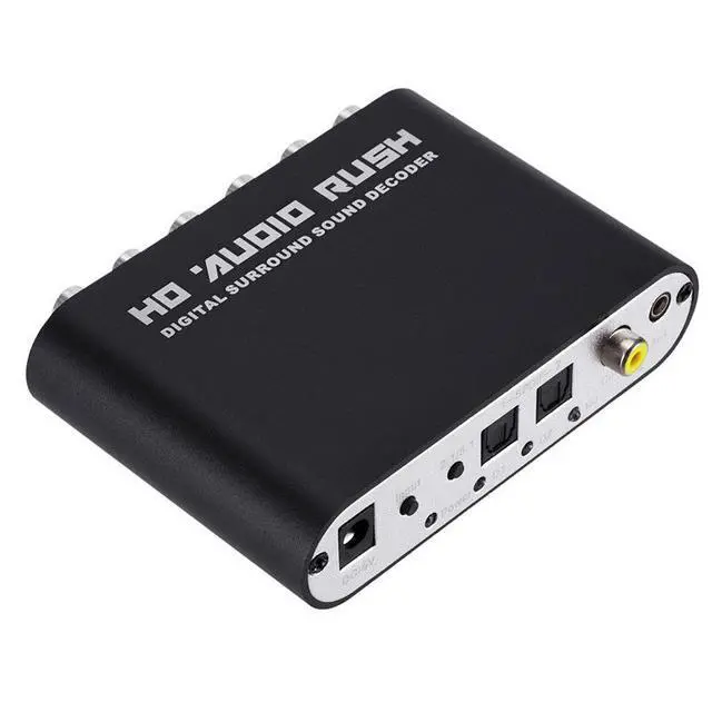 5.1-channel DTS Dolby/AC-3 audio decoder, digital optical/coaxial to analog RCA jacks