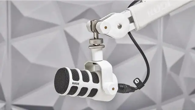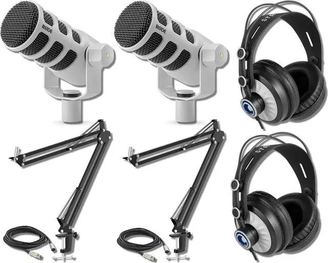 Pair of Rode PodMic dynamic broadcast microphones with cardioid pickup pattern