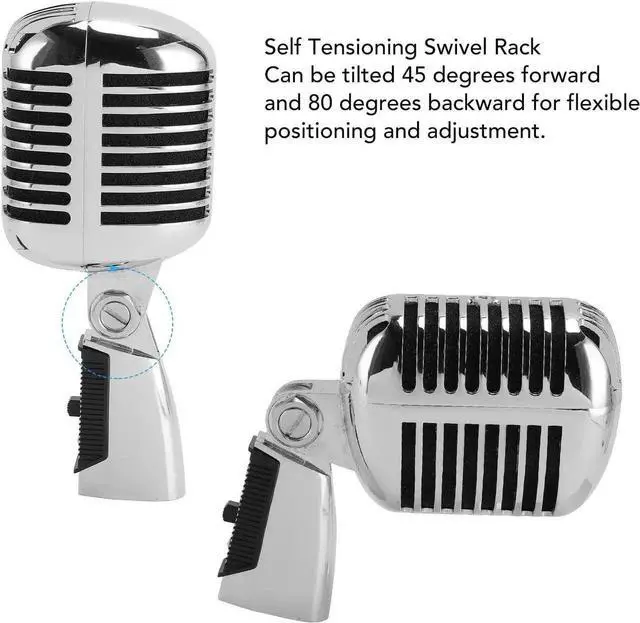 Angle Adjustable---This retro dynamic vocal microphone comes with a self tensioning swivel rack that can be tilted 45 degrees forward and 80 degrees backward for flexible positioning and adjustment.