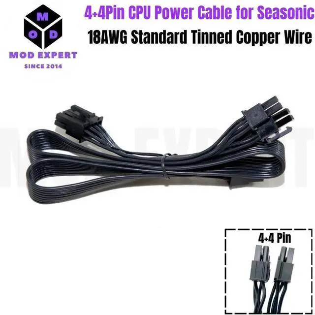CPU Power Cable 8Pin to 4+4Pin EPS/ATX12V for Seasonic PRIME PX-1600, PX-1300, PX-1200, PX-1000 Platinum Modular Power, Flat Cable 18AWG 60CM