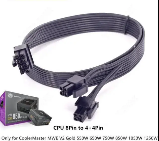 (NOTE: the 8 pin end and 4+4 pin male ends cannot be used interchangeably); Compatible with motherboard with ATX 4 pin or 8 pin port (Detachable CPU 8 pin(4+4) end could be used as EPS ATX 8 pin or P4 ATX 4 pin by sliding on/off the 4 pin.) The Cable Only Supports CoolerMaster MWE V2 Gold Fully Modular 550W 650W 750W 850W 1050W 1250W CoolerMaster MWE V2 Gold 550W (MPE-5501-AFAAG) CoolerMaster MWE V2 Gold 650W (MPE-6501-ACAAG) CoolerMaster MWE V2 Gold 750W (MPE-7501-ACAAG) CoolerMaster MWE V2 Gold 850W (MPE-8501-ACAAG) CoolerMaster MWE V2 Gold 1050W (MPE-A501-AFCAG) CoolerMaster MWE V2 Gold 1250W (MPE-C501-AFCAG) * NOT for MWE GOLD Series and other brands and models! The pinout of modular cables is only standardized on the device's side (hard drive, motherboard, graphics card). The pinout of power supply side are NOT standardized and Universal. Different PSU brands or even different series within a band can or may use different pinouts. Never mix modular or semi-modular PSU cables between power supplies. Mixing Modular PSU Cables may damage power supply, PCB board or other attached components.