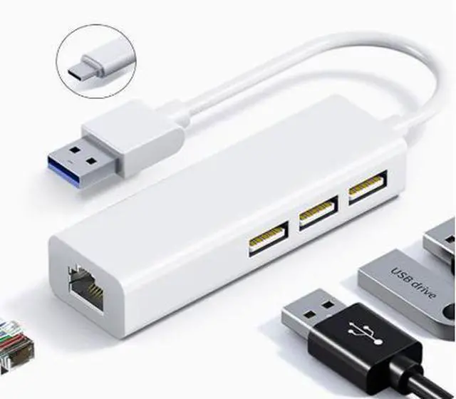 RJ45 type-C to network port USB network card converter, USB 2.0 HUB, wired network card with driver, 100Mbps network card 100Mbps network card + 3 USB 2.0 TYPE-C ports in black