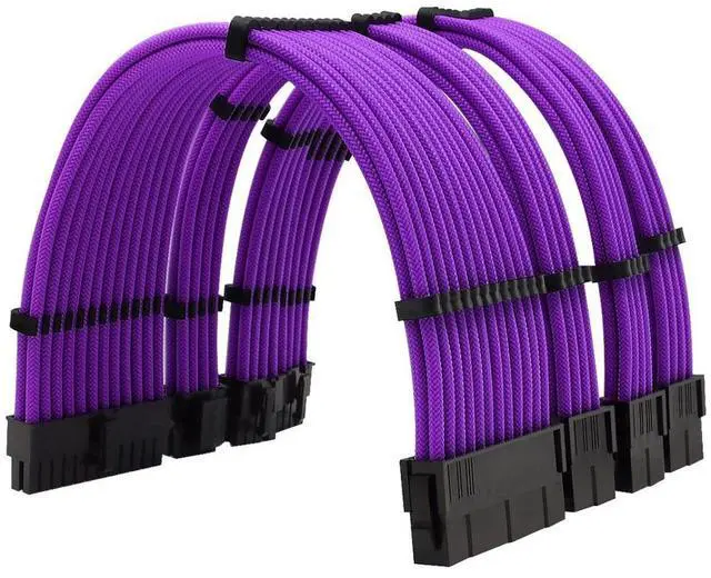 ATX computer VGA power extension cable data cable nylon braided mesh arc-shaped 4-piece set 18AWG tin-plated copper purple