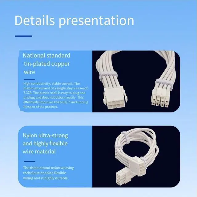 This cable is an extension cable, not a standard mainline. Therefore,it supports any ATXpower supply. The colorextension cable can be directly connected to the original power interface of the power supply,ensuring stable electricalperformance, reduced contact resistance,strong anti-oxidation,sulfidation and corrosion resistance,increasedfriction coefficient and hardness,extended service life, and improved adaptability to the environment.