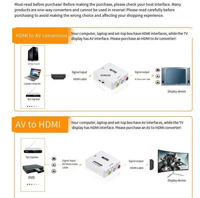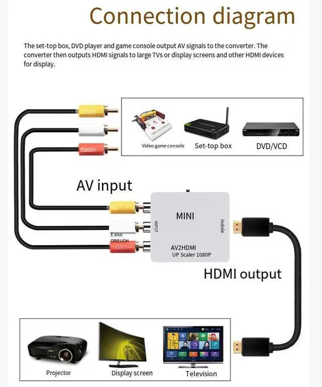 Your computer, laptop and set-top box have AV interfaces, while the TVdisplay has HDMl interface. Please purchase an AV to HDMl converter!