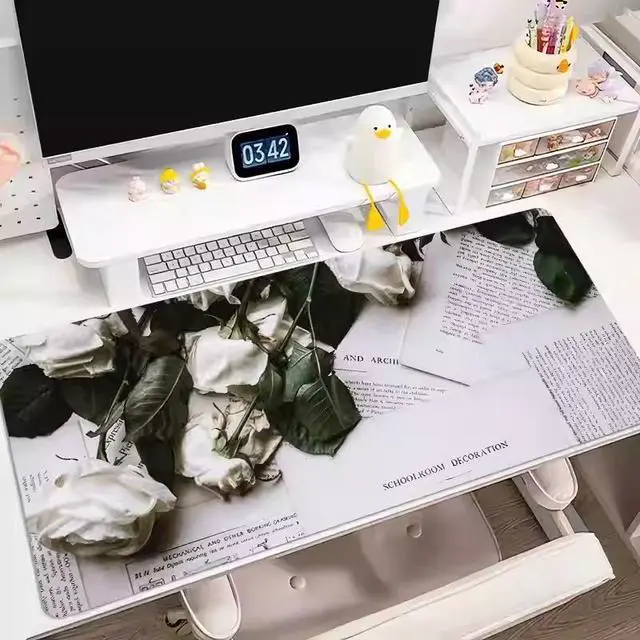 Rose flower mouse pad - Extra large and simple notebook keyboard pad - Large-sized table pad - Women's office durable computer table pad - 35.43 x 15.75 inches 9