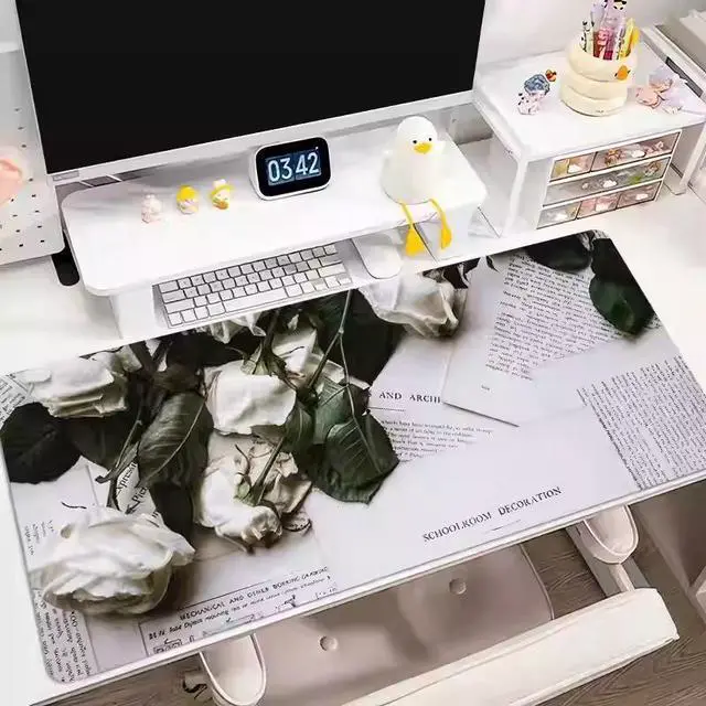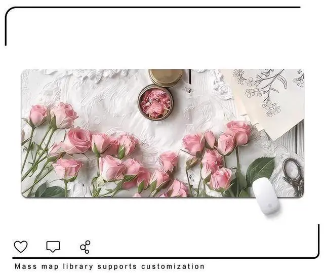 Rose flower mouse pad - Extra large and simple notebook keyboard pad - Large-sized table pad - Women's office durable computer table pad - 35.43 x 15.75 inches 7