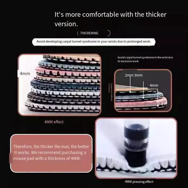 The thicker it is, the higherthe elasticity, and the betterit is at protecting the wrist.Soft support, protecting the wrist.Heat transfer printing