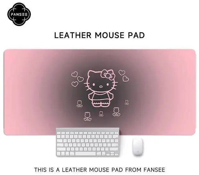 Kitty Cat mouse pad - Extra large, simple, cute, girls' cartoon custom computer keyboard desk pad - Large size, dirt-resistant 35.43 x 15.75 inches