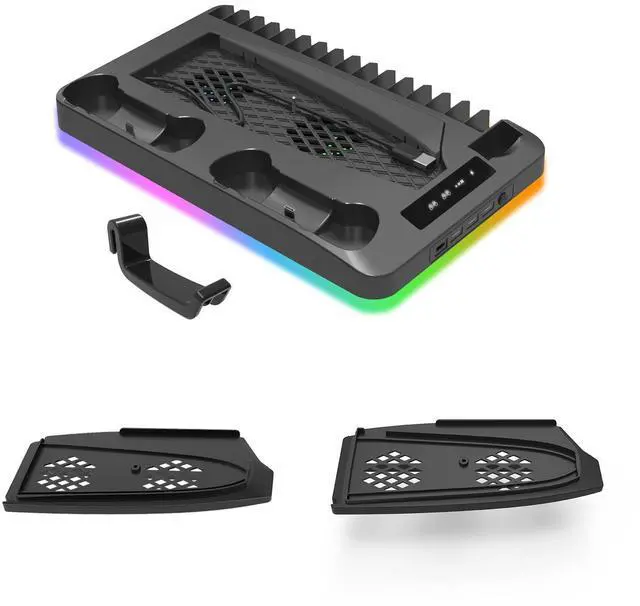 PS5/slim/pro cooling stand with RGB lights, PS5 controller charging stand, storage for game discs, headphones