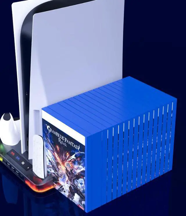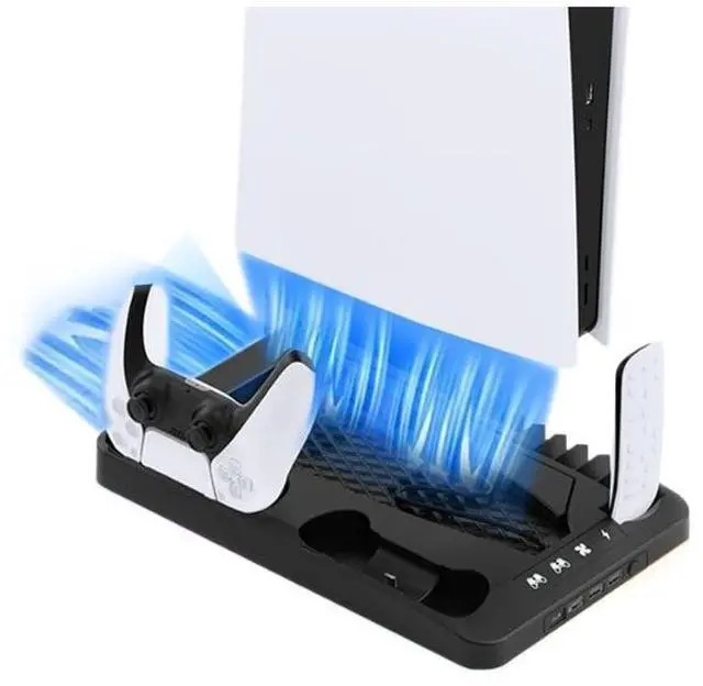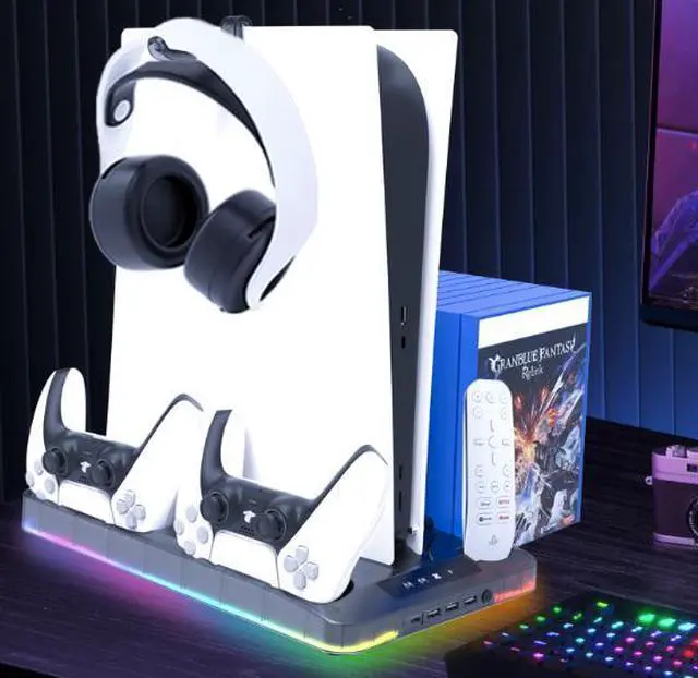 PS5/slim/pro cooling stand with RGB lights, PS5 controller charging stand, storage for game discs, headphones