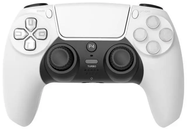 The end of the cross key on the PS4 controller is supported by fourpressure-sensitive rubber balls. The key surface is in the shape of aU-shaped arc, with the center recessed to fit the thumb pad.