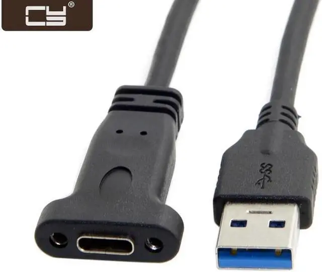 USB-C USB 3.1 Type C Female to USB 3.0 A Male Data Cable 20cm with Panel Mount Screw Hole