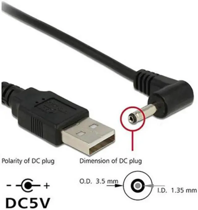 USB 2.0 Male to Right Angled 90 Degree 3.5 mm 1.35 mm DC power Plug Barrel 5v Cable 80cm